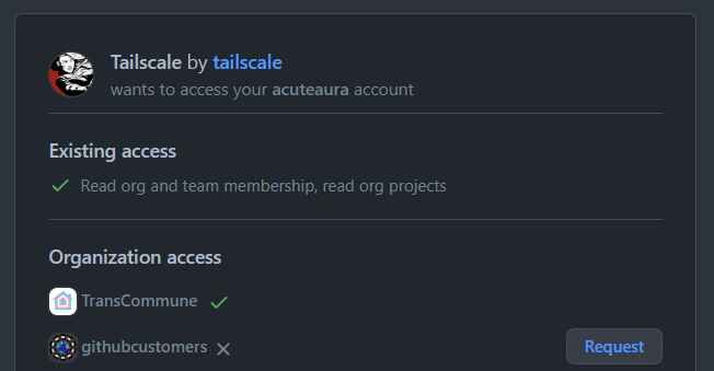 However, if an application requests the org:read scope to list the user’s organizations, it does not actually matter if you click “Authorize” or “Continue”. The organization is included in the scope of the token either way, conveying authentication as organization member.